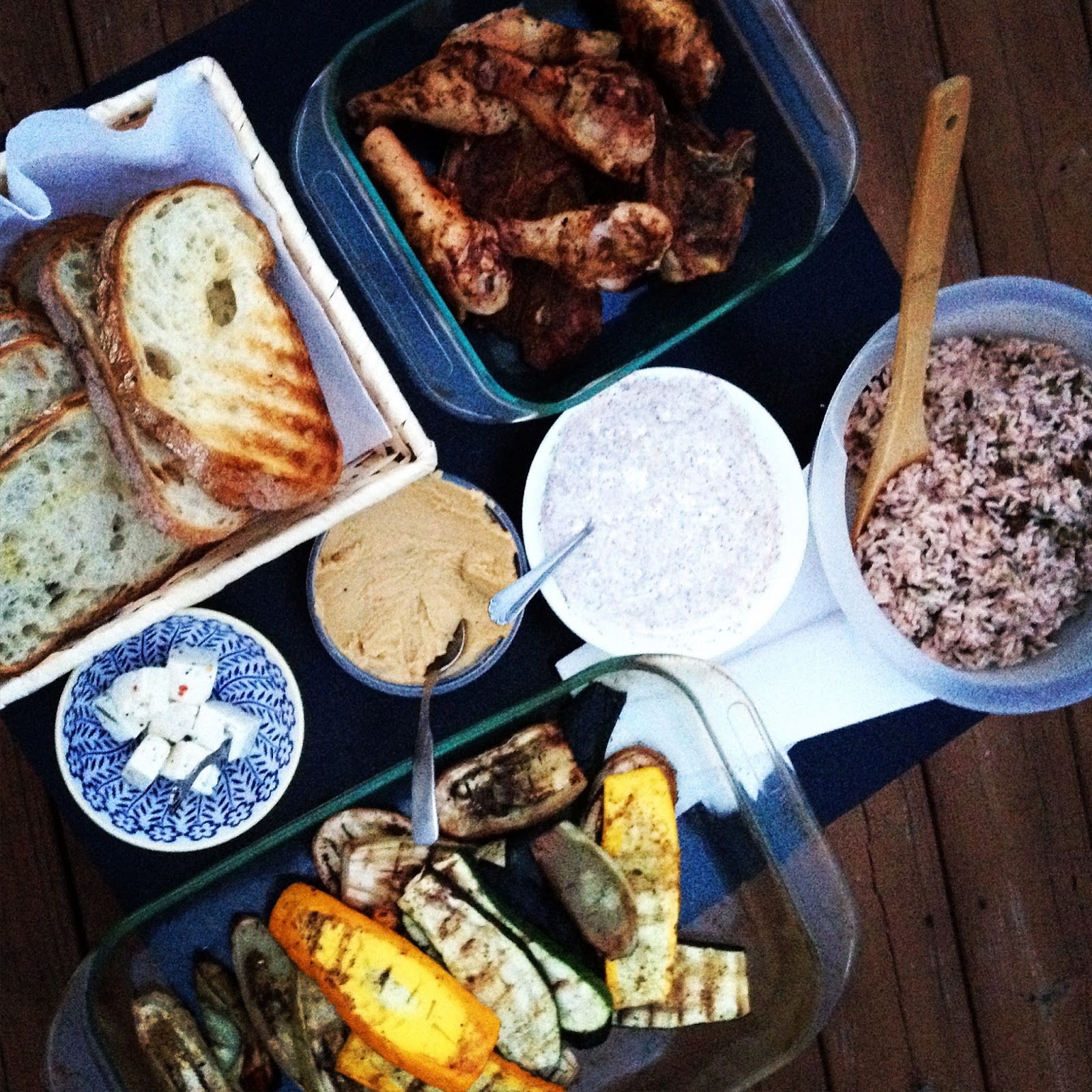 For the chicken: Distribute the adjika evenly over the chicken legs, rubbing the spice in with your fingers. The blend is already salty enough for my taste, so I'd only add salt after cooking. Let the chicken sit at room temperature while you prepare your grill (or your other side dishes, like grilled veggies sprinkled with utskho suneli) or a yogurt-feta sauce to go with some pita that you just happen to have on hand.